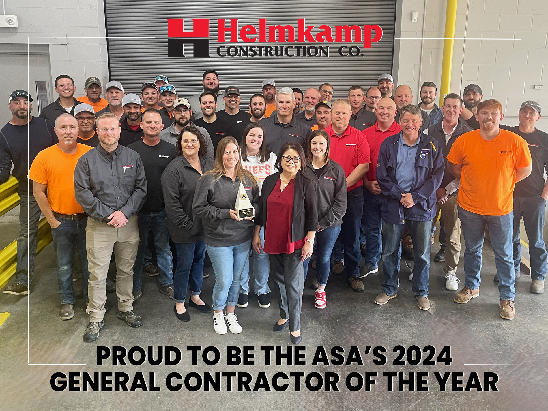 East Alton, IL – Helmkamp Construction Co. had multiple reasons to celebrate at the recent annual awards gala hosted by the Midwest Council of the American Subcontractors Association (ASA) in St. Louis, MO. The ASA Midwest Council hosted 420 people for the 31st annual event. The award categories included General Contractor of the Year, Outstanding MEP Subcontractors, Outstanding Specialty Subcontractors, and Service Provider/Supplier of the Year. The ASA Legacy Award, and GC Field & Office Employees of the Year, were also recognized at the gala.